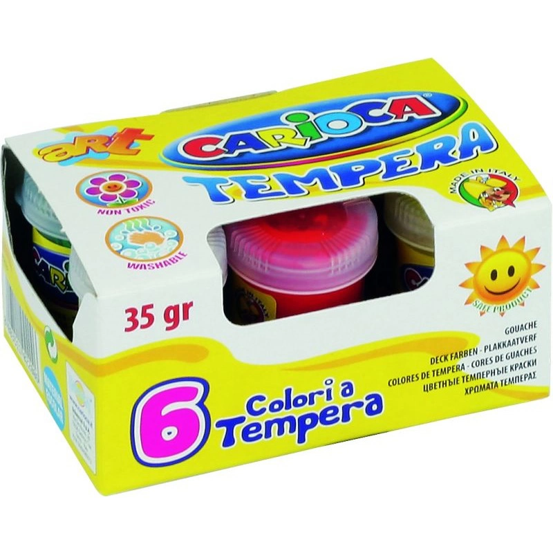 Wodorozcieńczalne farby Tempera Carioca - idealne do nauki i do prac grupowych, do malowania na wszystkich porowatych powierzchniach: papierze, kartonie, drewnie, polistyrenie itp.