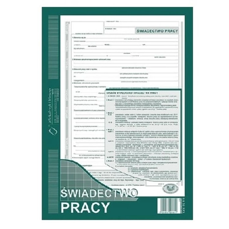 ŚWIADECTWO PRACY 501-1 Świadectwo Pracy (A4) indeks: 501-1 | typ: oryginał + kopia