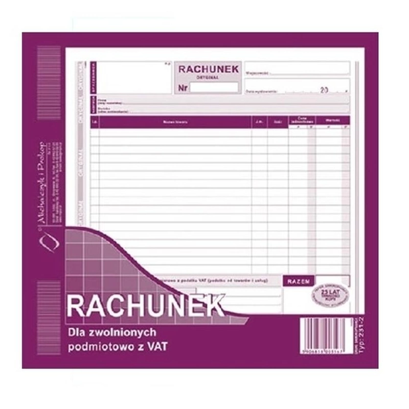 RACHUNEK DLA ZWOLNIONYCH PODMIOTOWO Z VAT 231-2