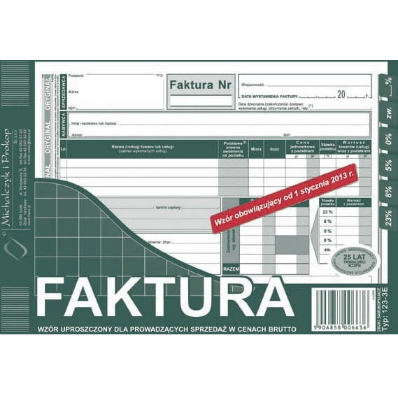 FAKTURA WZÓR UPROSZCZONY DLA PROWADZĄCYCH SPRZEDAŻ W CENACH BRUTTO 123-3E