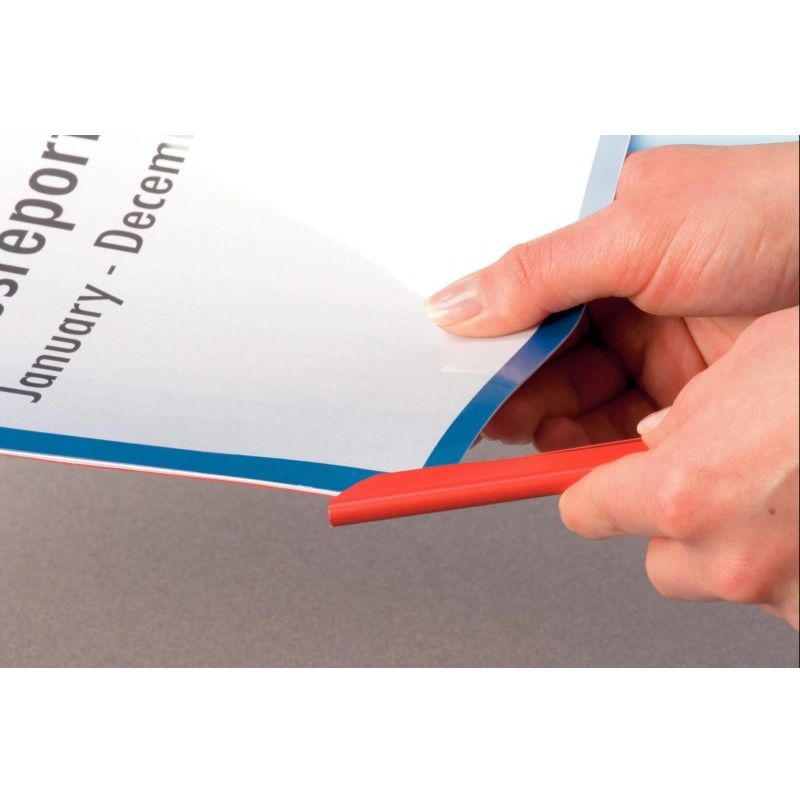 Kartki papieru trzeba tylko wsunąć w plastikową listwę - to wszystko! Idealne do szybkiej i łatwej oprawy. Grzbiety wsuwane mogą być łączone z okładkami do oprawy grzbietowej.