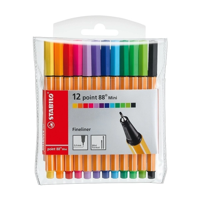 CIENKOPISY STABILO POINT 88 - KOMPLET 12 KOLORÓW