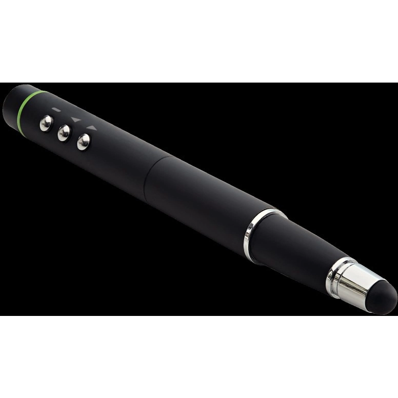Z funkcją "podłącz i używaj", dostosowany do pracy z komputerami Windows i Mac, nie wymaga dodatkowego oprogramowania. Port USB wbudowany w skuwkę długopisu, wysuwa się po naciśnięciu. Intuicyjne sterowanie 3 przyciskami: przechodzenie na następną stronę lub cofanie na poprzednią oraz z laserowy wskaźnik. Czerwone światło lasera idealnie zaznacza wybrany element.