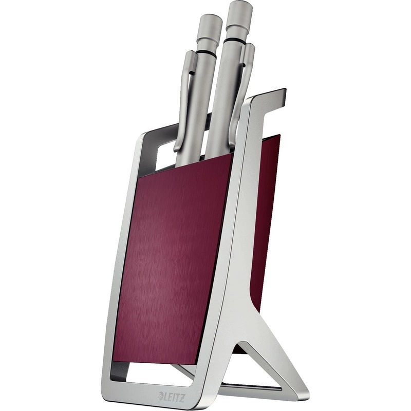 KUBEK NA DŁUGOPISY LEITZ STYLE czerwony, metalowy stelaż, miękkie dno