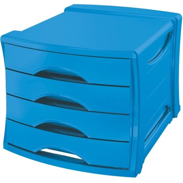 4 łatwo wysuwane szuflady z blokadą zabezpieczającą przed całkowitym wysunięciem. Wyposażony w ramkę do wymiany etykiet oraz etykietę, które ułatwiają wyszukiwanie dokumentów.