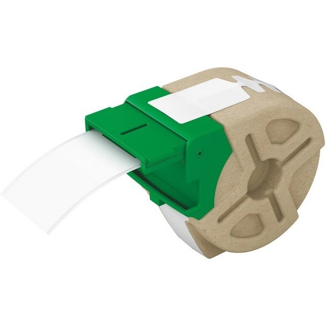 Biała, papierowa taśma do drukowania różnych typów etykiet. Inteligentna kaseta umożliwia drukowanie samoprzylepnych etykiet z trwałym klejem, pozwala uniknąć zacięć papieru i nie wymaga zużycia całej taśmy, by wydrukować jedną etykietę.
