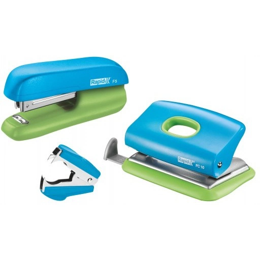 Kompaktowy, łatwy w użyciu zszywacz. Zintegrowany z dziurkaczem, łatwy do opróżniania plastikowy pojemnik na ścinki. Zszywacz na zszywki Rapid Standard nr.10. W komplecie zszywki i rozszywacz.