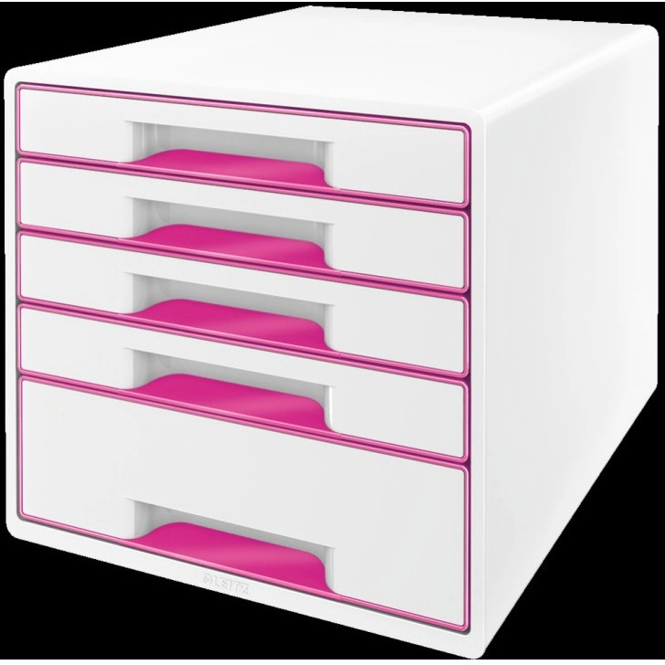 Przykuwające wzrok, najwyższej jakości pojemniki z szufladami WOW z niezwykłym i stylowym połączeniem dwóch kolorów o błyszczącym wykończeniu. Wytrzymały pojemnik z szufladami doskonale pasuje do pozostałych produktów z kolekcji Leitz WOW.