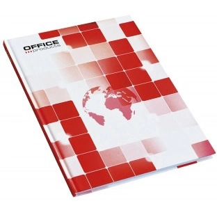Brulion Office Products, wytrzymały - szyty i klejony. Laminowana okładka, wewnętrzne strony z linią marginesu w kolorze czerwonym.