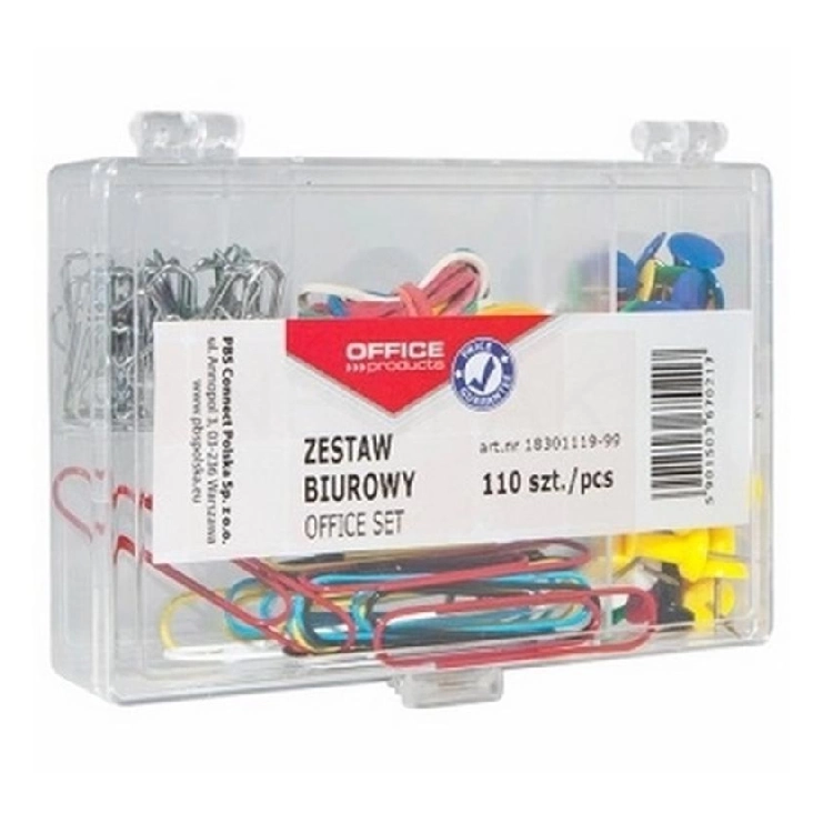 Zestaw biurowy w praktycznym organizerze. Opakowanie - 110 sztuk.