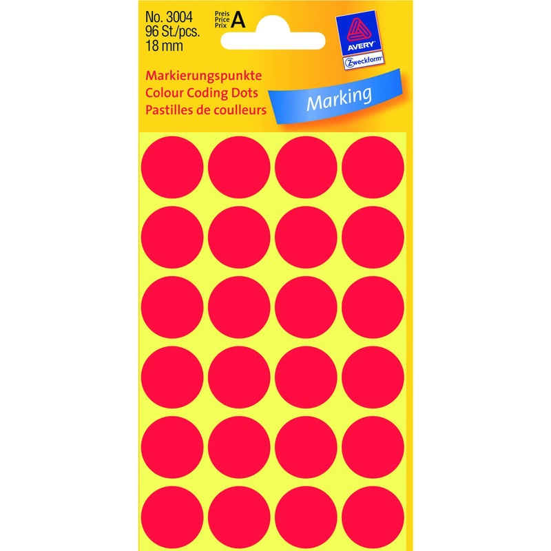 KÓŁKA DO ZAZNACZANIA AVERY ZWECKFORM O ŚREDNICY 18 MM TRWAŁE czerwone, 96 sztuk