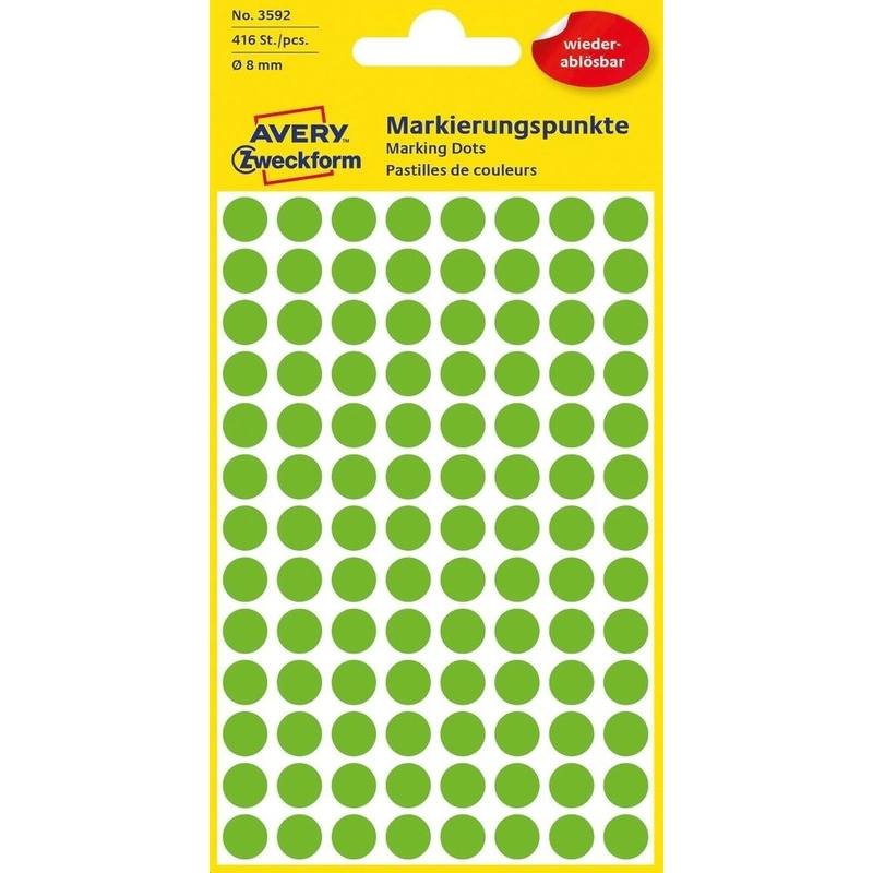 KÓŁKA DO ZAZNACZANIA AVERY ZWECKFORM O ŚREDNICY 8 MM USUWALNE zielone, 416 sztuk
