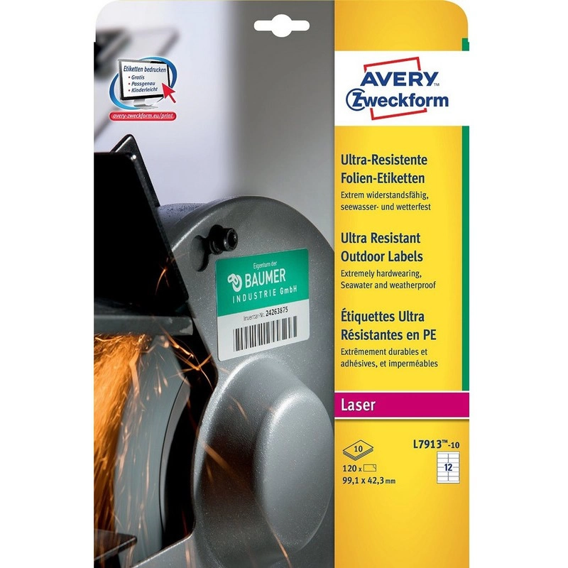 Białe etykiety Ultra Resistant – Avery Zweckform są niezwykle wytrzymałe i nadają się do trwałej aplikacji zarówno wewnątrz, jak i na zewnątrz.