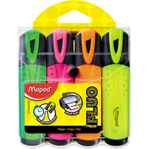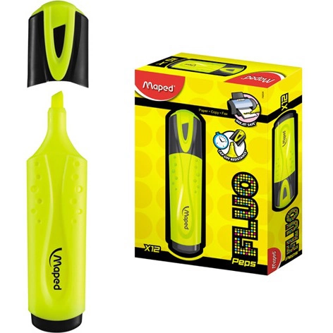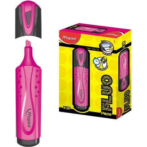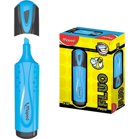Zakreślacz MAPED FLUO PEPS firmy MAPED o klasycznym kształcie obudowy. Perforowane boki zapewniają komfort kreślenia i zapobiegają wyślizgiwaniu się zakreślacza z dłoni.