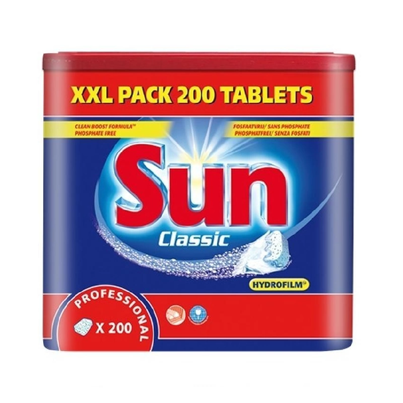 SUN Professional Classic Tablets to specjalna formuła, która zapewnia między innymi: alkalia i związki powierzchniowo czynne oraz enzymy, dzięki czemu produkt skutecznie usuwa zabrudzenia tłuszczowe. Ponadto, zawiera sekwestranty, które zapobiegają powstaniu osadu wapiennego w zmywarkach oraz związki wybielające na bazie tlenu, które wspomagają usuwanie zabrudzeń.