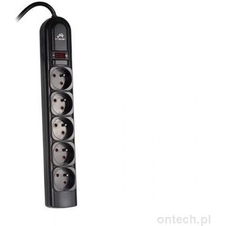 LISTWA ZASILAJĄCA TRACER POWERGUARD czarna, 5 gniazdek, przewód 5 m