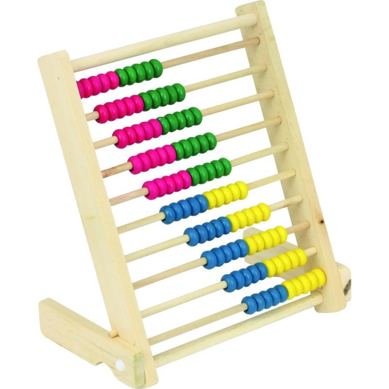 Drewniane liczydło ze stabilną, składaną podstawą. Zawiera 100 kolorowych korali (10 x 10).