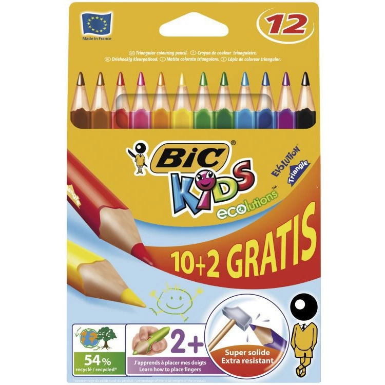 KREDKI OŁÓWKOWE BiC KIDS EVOLUTION TRIANGLE 12 kolorów (10 + 2)