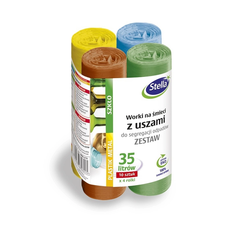 WORKI STELLA Z USZAMI DO SEGREGACJI ODPADÓW 35 l, 4 kolory, zestaw 4 x 10 sztuk