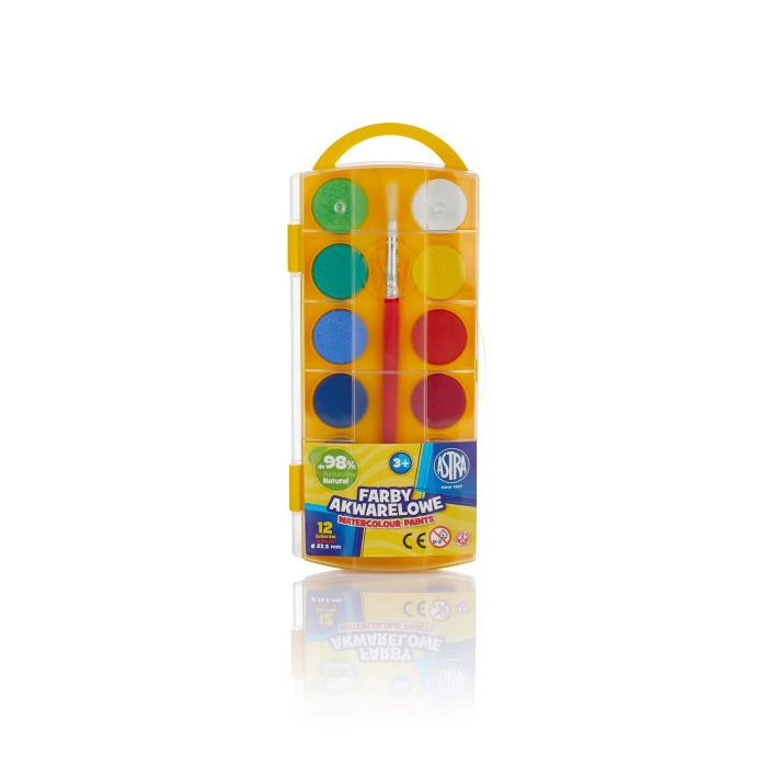 FARBY AKWARELOWE 12 kol, z pędzelkiem 23,5