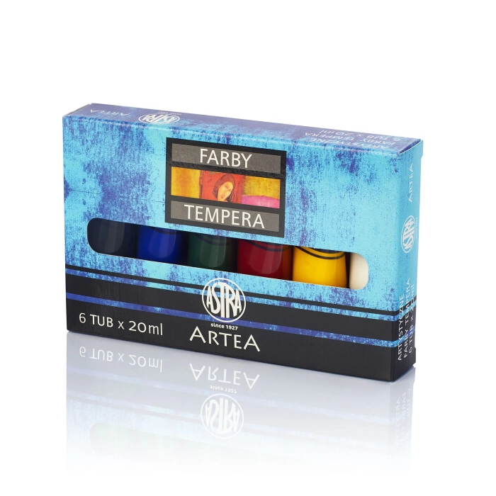 Farby tempera to farby wodorozcieńczalne, przeznaczone do malowania na papierze, tekturze, kartonie, drewnie oraz tynku. Użyte składniki powodują równomierne rozprowadzanie farby na podłożu. Wysokiej jakości, drobno zmielone pigmenty użyte są w farbach w tak wysokich stężeniach, że zapewniają wymalowaniom bardzo intensywne, żywe barwy nawet przy stosowaniu dużych rozcieńczeń. Powierzchnie pomalowane temperami ASTRA przy schnięciu bardzo delikatnie matowieją i stają się aksamitne.
