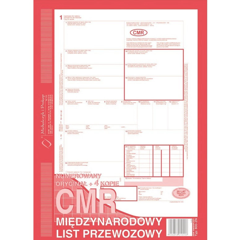 CMR LIST PRZEWOZOWY NUMEROWANY (O+4K) 800-2-N CMR Międzynarodowy list przewozowy (A4) indeks: 800-2-N