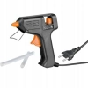Pistolet do kleju na gorąco jest niezastąpionym urządzeniem do pracy w domu, garażu, warsztacie. Polecany zarówno do drobnych napraw jak i do tworzenia przedmiotów dekoracyjnych. W bardzo łatwy, szybki i precyzyjny sposób umożliwia łączenie elementów bez potrzeby oczekiwania na zaschnięcie kleju. Idealny do klejenia elementów wykonanych z różnych materiałów. Lekki i łatwy w obsłudze. Ergonomiczny kształt sprawia, że pistoletem wygodnie się pracuje.