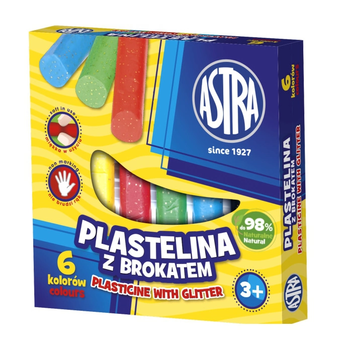 PLASTELINA Z BROKATEM ASTRA 6 kolorów