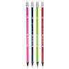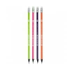 Drewniany ołówek grafitowy z gumką. Trójkątny przekrój prawidłowo kształtujący układ dłoni i ułatwiający naukę pisania. Lakierowana oprawa z czarnego drewna. Kolory ołówków wysyłane losowo.