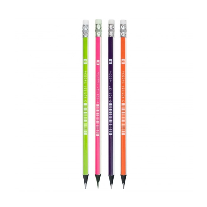 Drewniany ołówek grafitowy z gumką. Trójkątny przekrój prawidłowo kształtujący układ dłoni i ułatwiający naukę pisania. Lakierowana oprawa z czarnego drewna. Kolory ołówków wysyłane losowo.