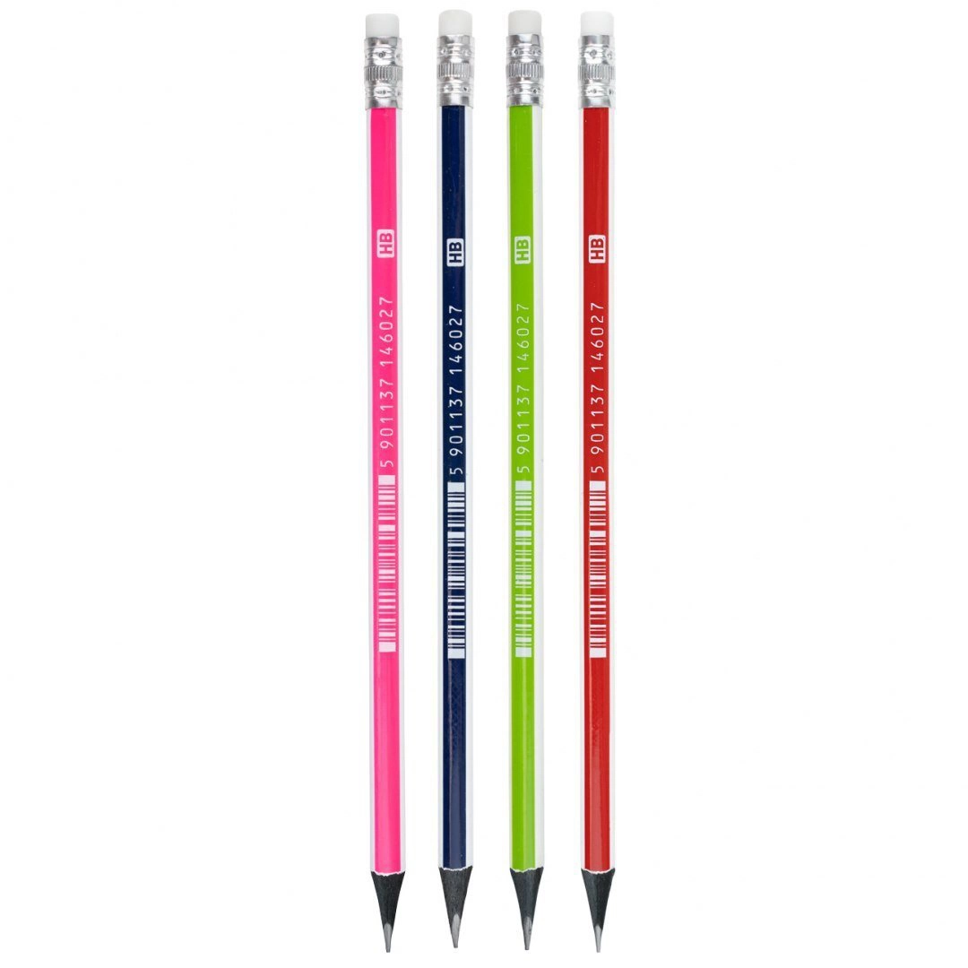 Drewniany ołówek grafitowy z gumką. Trójkątny przekrój prawidłowo kształtujący układ dłoni i ułatwiający naukę pisania. Lakierowana oprawa z czarnego drewna. Kolory ołówków wysyłane losowo.