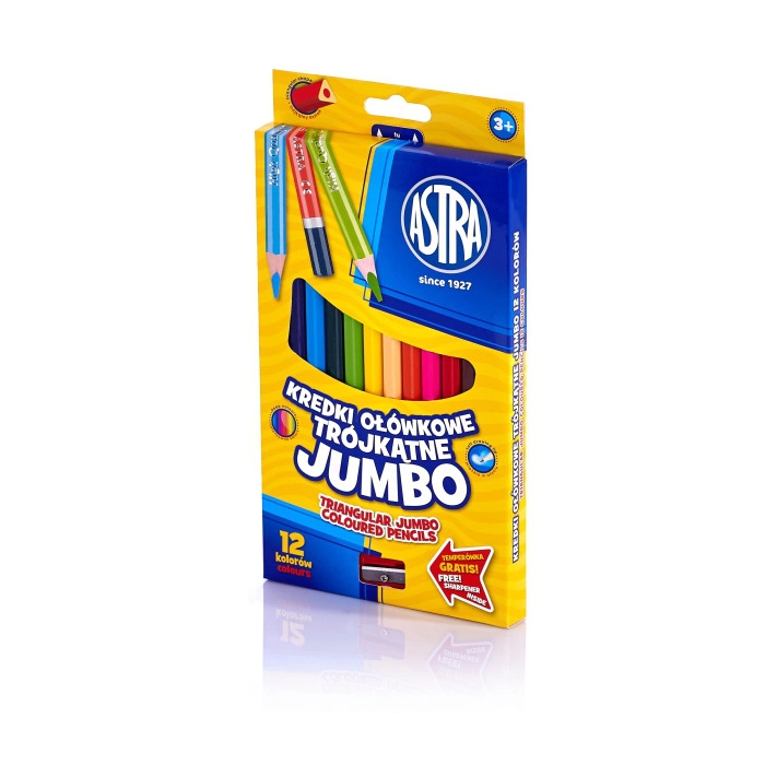 KREDKI OŁÓWKOWE TRÓJKĄTNE ASTRA kredki 12 kolorów, z temperówką, JUMBO ASTRA