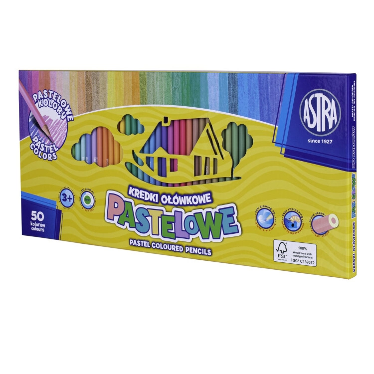 KREDKI OŁÓWKOWE PASTELOWE ASTRA 50 kolorów