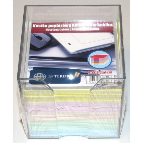 KOSTKA PAPIEROWA  INTERDRUK KOSTKA PAPIEROWA+POJEMNIK 85 X 85 X 70 MM NIEKLEJONA KOLOROWA