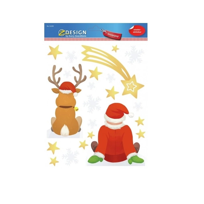 Ciekawie zdobione, samoprzylepne naklejki świąteczne na okna i inne gładkie powierzchnie, takie jak: szklane drzwi, meble, ściany, lustra, świeczniki i wiele innych. Naklejki są wykonane z transparentnej, zadrukowanej folii, dlatego naklejone na szklaną powierzchnię wyglądają efektownie i estetycznie z obu stron. Ponadto, są bardzo łatwe do usunięcia i nie pozostawiają śladów kleju. Dostępne w różnych, świątecznych motywach. Doskonale sprawdzą się jako prezent, do kreatywnych zabaw, ozdabiania i różnego rodzaju rękodzielnictwa.