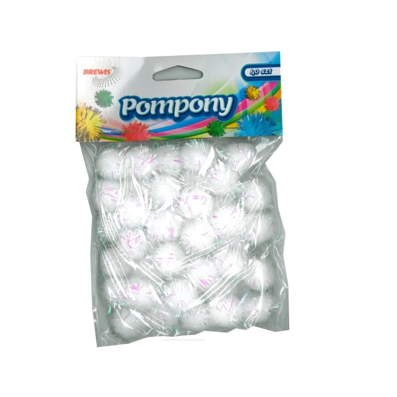POMPONY BREWIS metaliczne 2cm, białe