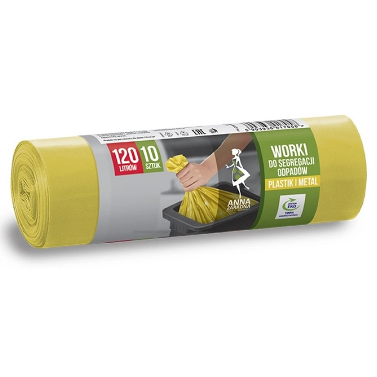 WORKI DO SEGREGACJI ODPADÓW - PLASTIK I METAL ANNA ZARADNA 120 l, żółte, 10 sztuk