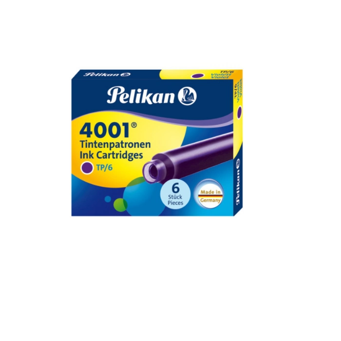 Atrament Pelikan 4001 w nabojach o pojemności 0,8 ml pakowanych po 6 naboi, zaprojektowany tak, by chronić pióro wieczne i stalówkę zapewniając równocześnie maksymalny komfort pisania.