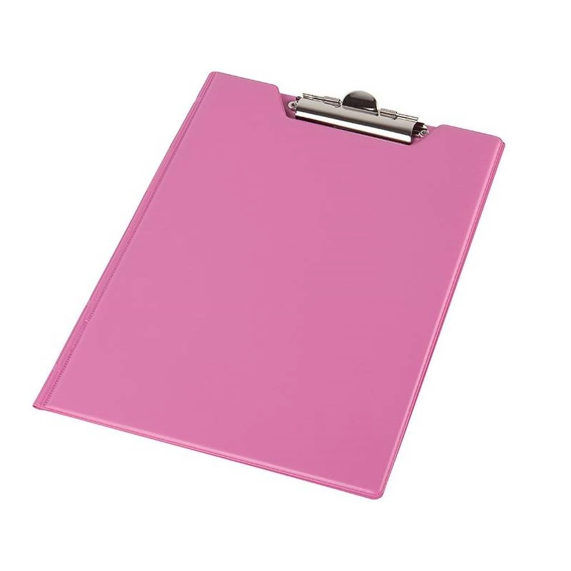Podkładka do pisania z okładką, wykonana z bardzo lekkiej tektury oblewanej folią PVC lub ekologiczną folią winylową. Szeroka klamra trzyma kartki przed pogubieniem.
