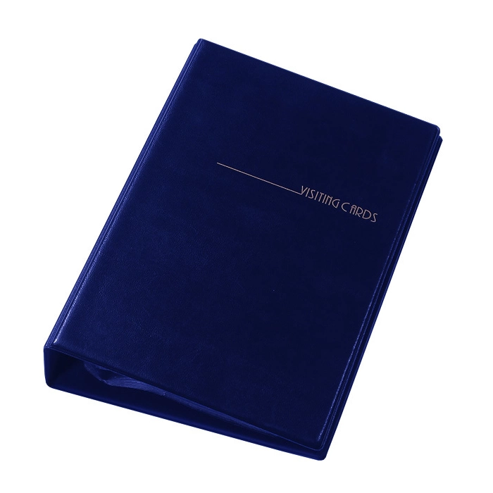 Elegancki, poręczny wizytownik z okładką wykonaną ze skóropodobnego winylu.