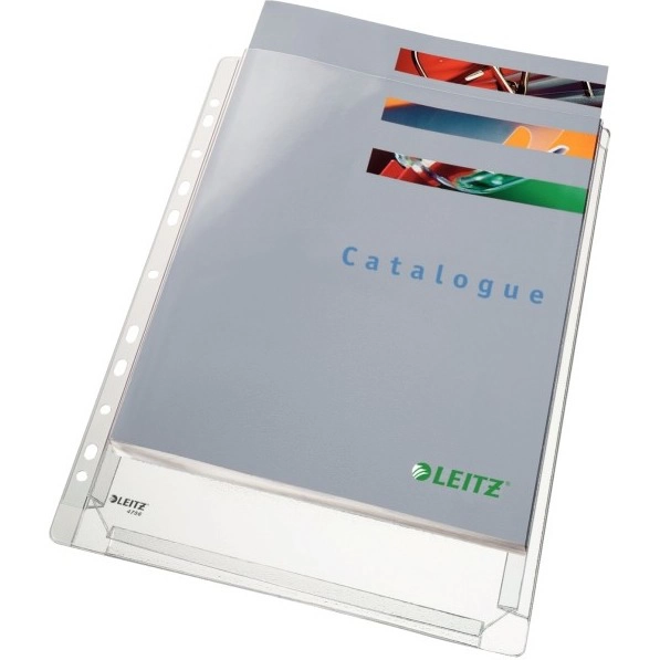 Koszulka z poszerzonymi bokami do przechowywania katalogów, cenników i grubszych ofert. Wykonana z groszkowej folii o grubości 170 mic. Multiperforowana -pasują do każdego typu segregatora.