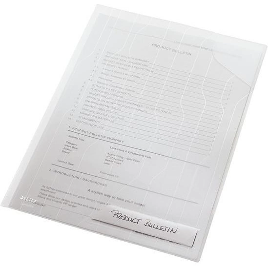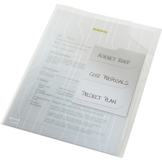 Folder o cechach ofertówki i koszulki z unikalnym składanym paskiem z otworami do wpięcia w segragator. Dokumenty nie wysuwają się dzięki narożnej kieszonce. Łatwy dostęp do dokumentów zarówno od góry, jak i z prawej strony. Atrakcyjne wzornictwo i tłoczenie na folii polipropylenowej.